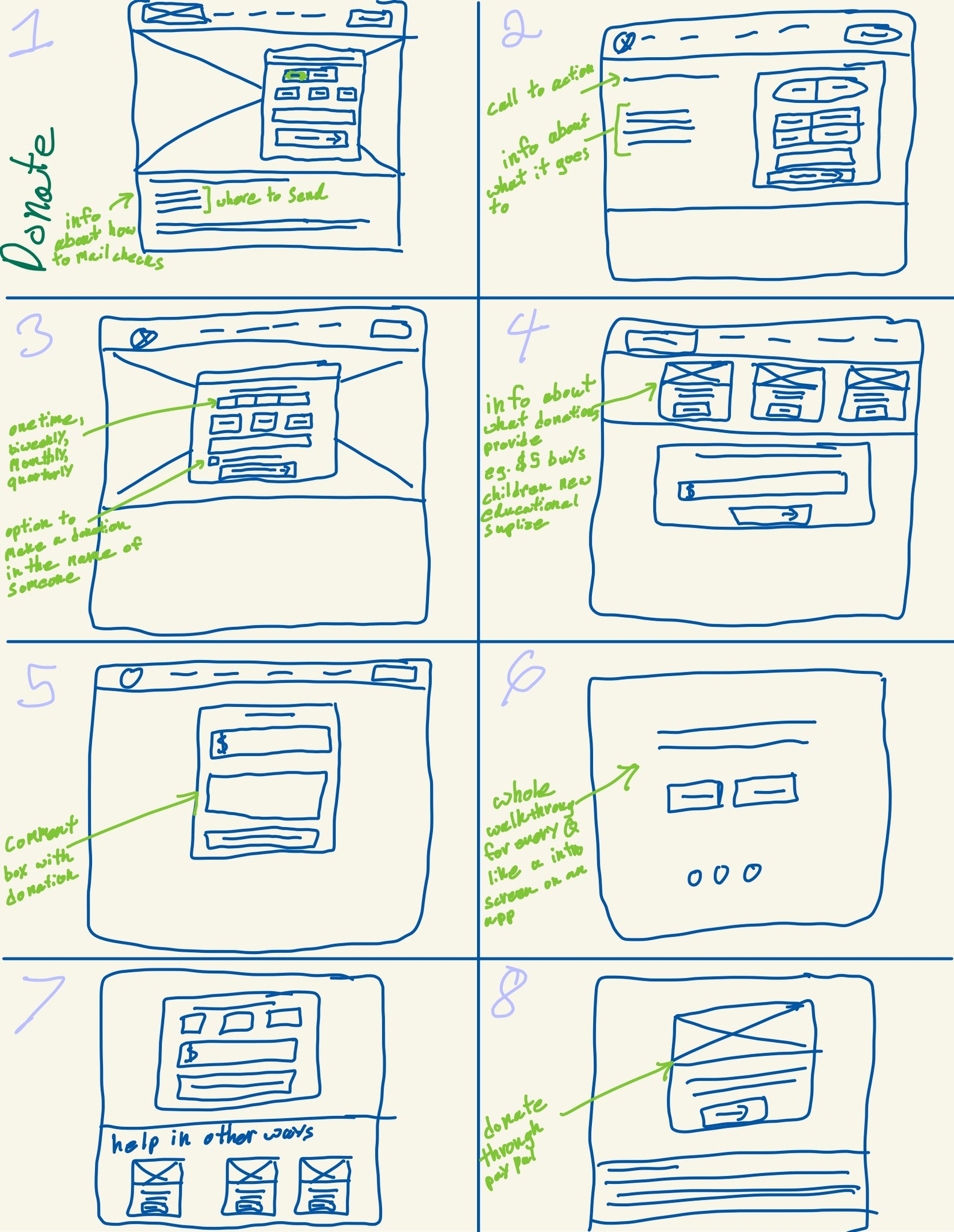 Before we started on wireframes, we ran a crazy 8s exercise and, as a team, explained the value of our design ideas. We only allowed ourselves to voice thoughts that were rooted in research or design practices, thus leading to engaging discussions.
